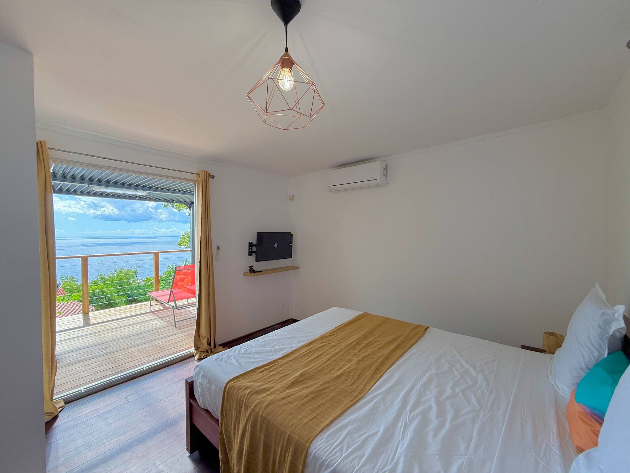 Le studio offre une vue imprenable sur la mer, parfaite pour admirer les couchers de soleil et savourer des moments de détente. Fonctionnel et bien agencé, il dispose de tout le nécessaire pour un séjour agréable : espace nuit confortable, coin repas, cuisine équipée et salle de bain privative.