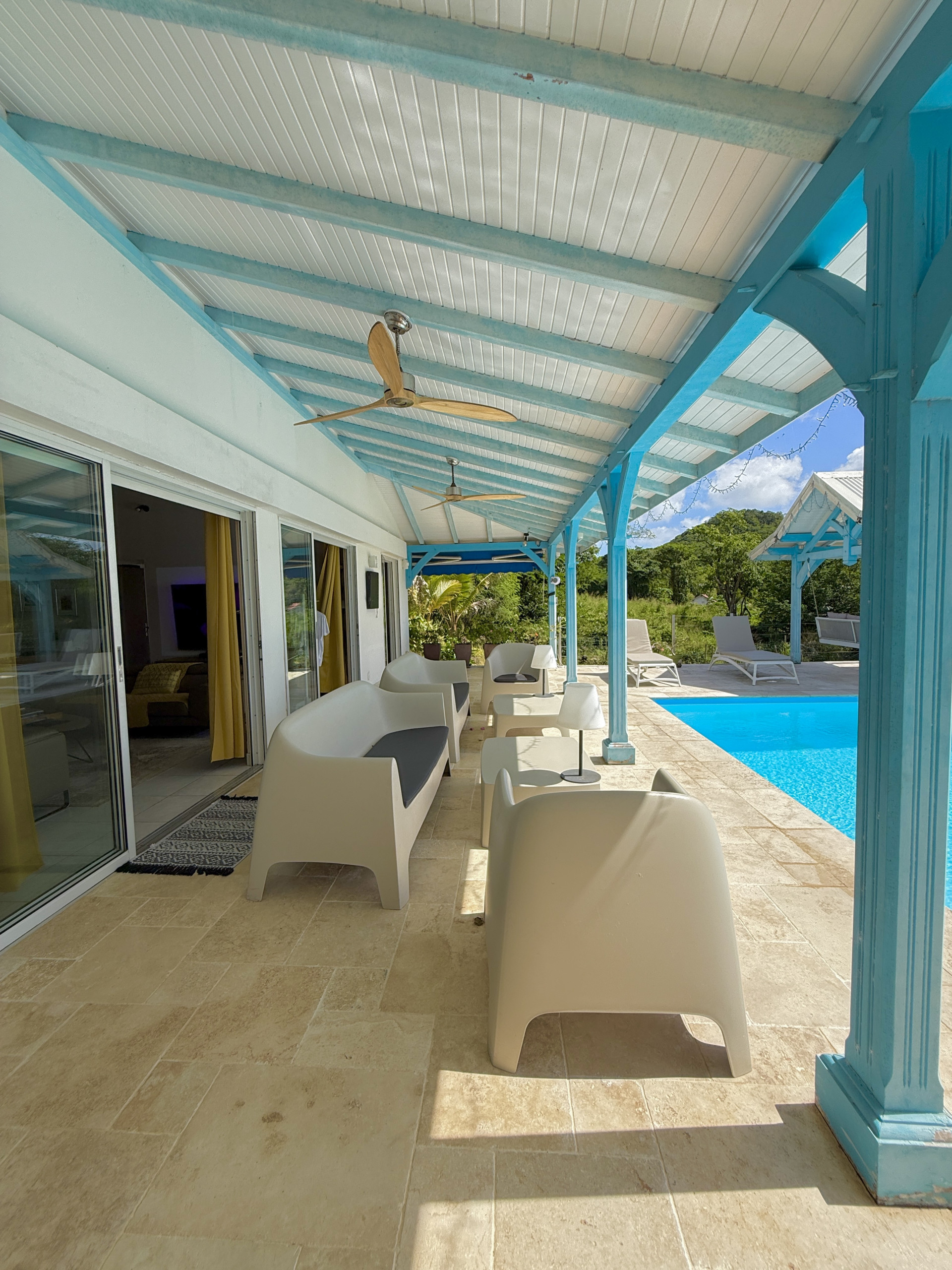 Villa à Le Diamant qui possède 5 chambre(s) et Capacité pour 10 personnes. Logement de 300 m². Elle dispose de jardin, lave-linge, sèche-linge, barbecue, fer à repasser, accès internet (wifi), sèche-cheveux, climatisation, piscine privée, parking couvert même bâtiment, 3 Télévisions, tv satellite.La cuisine américaine, à gaz, est équipée avec réfrigérateur, micro-ondes, four, lave-vaisselle, vaisselle/couverts, ustensiles/cuisine, cafetière, grille pain et bouilloire.