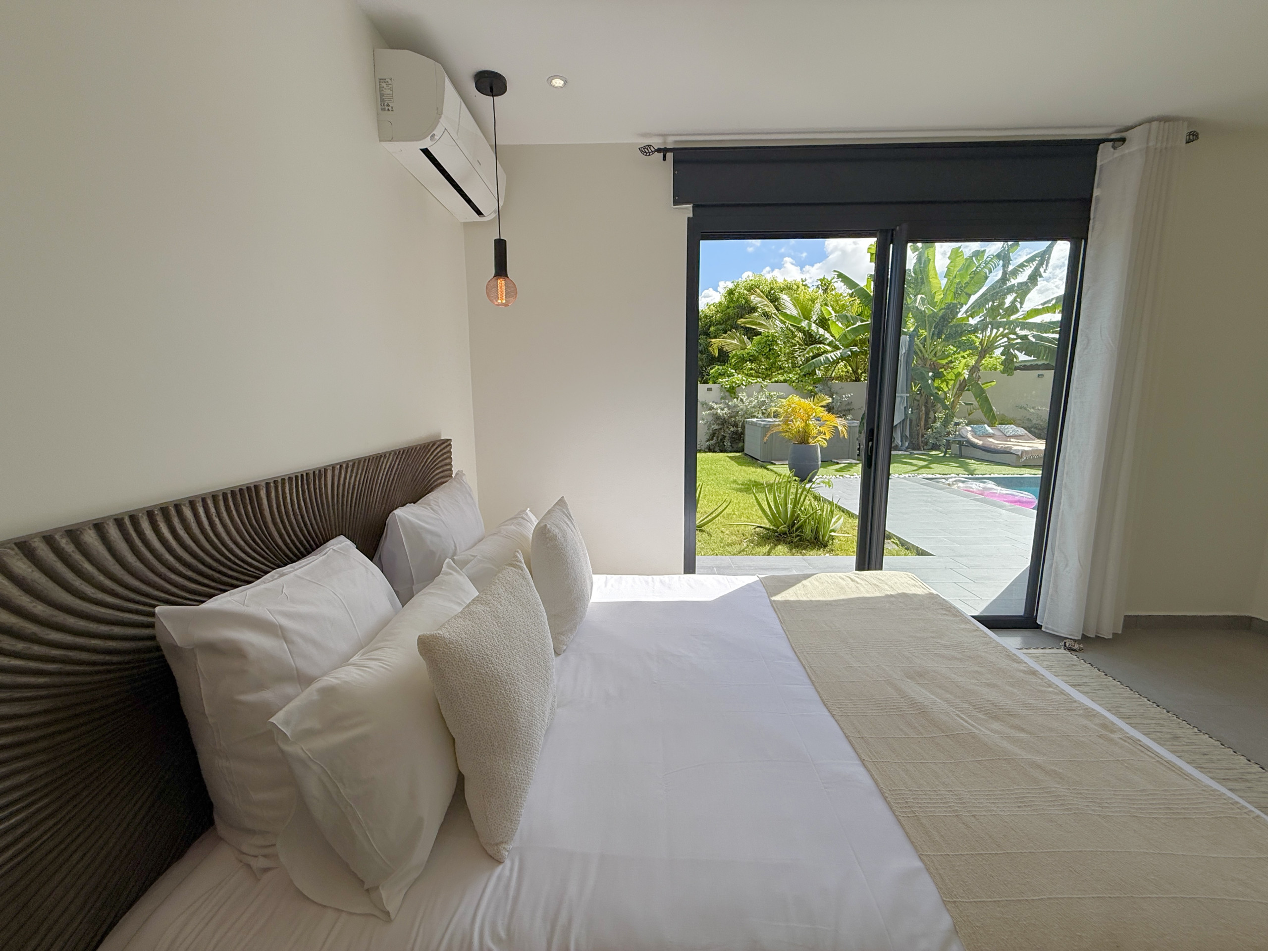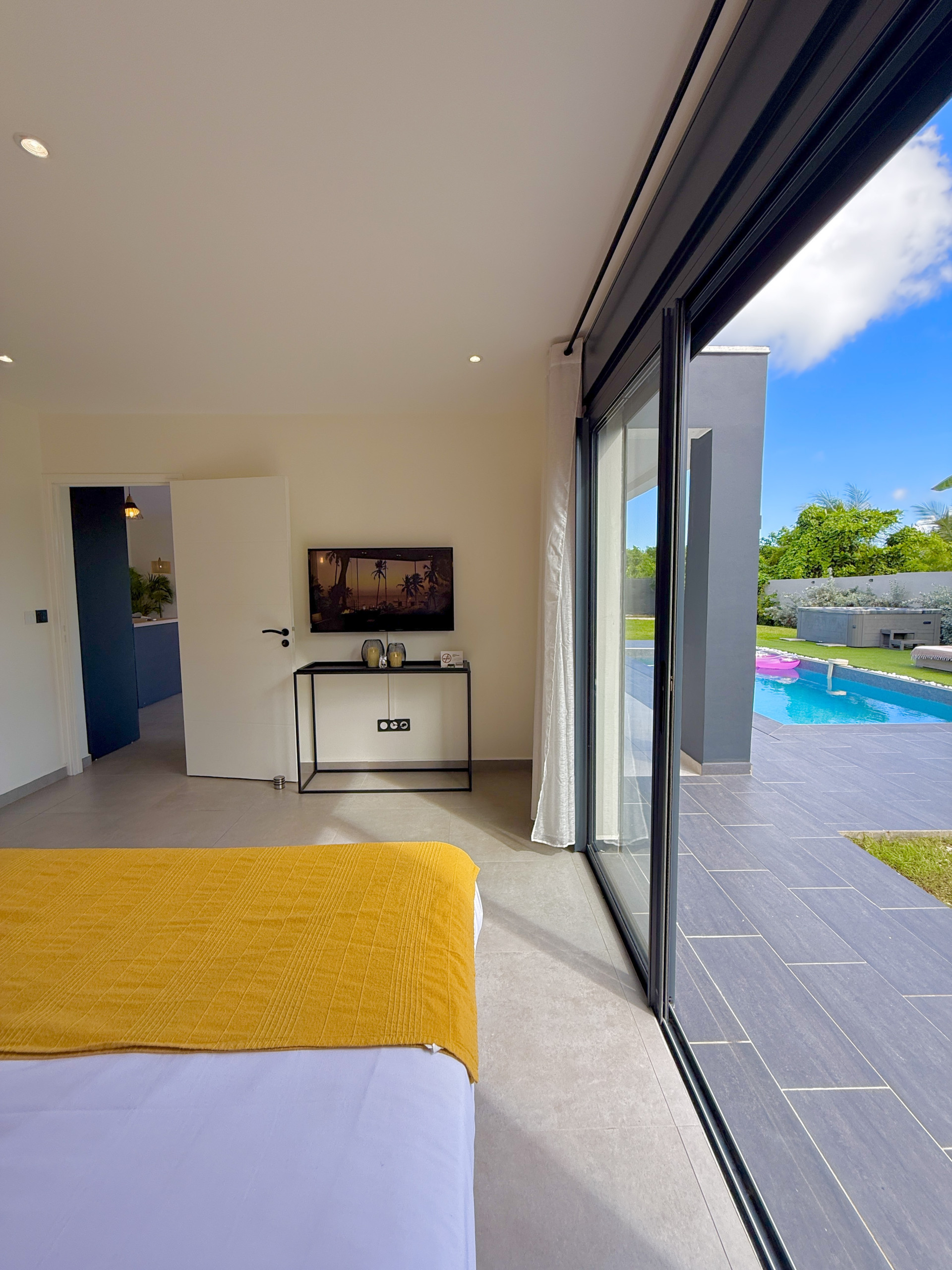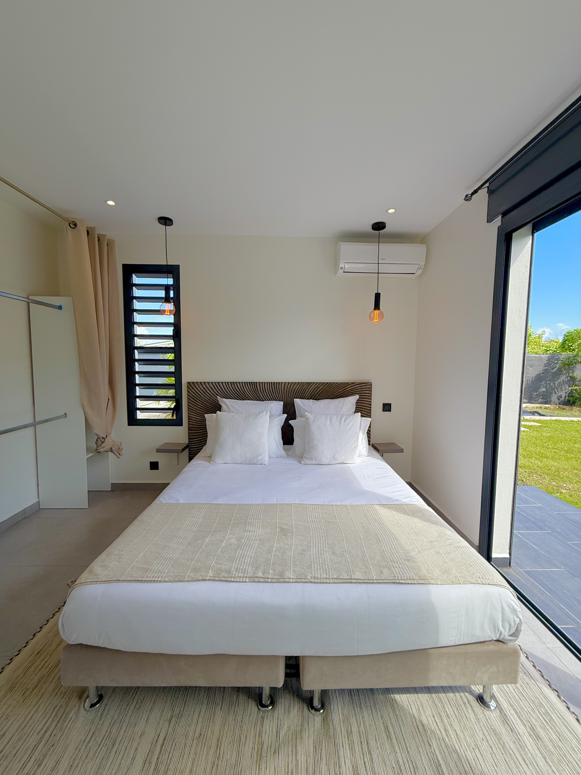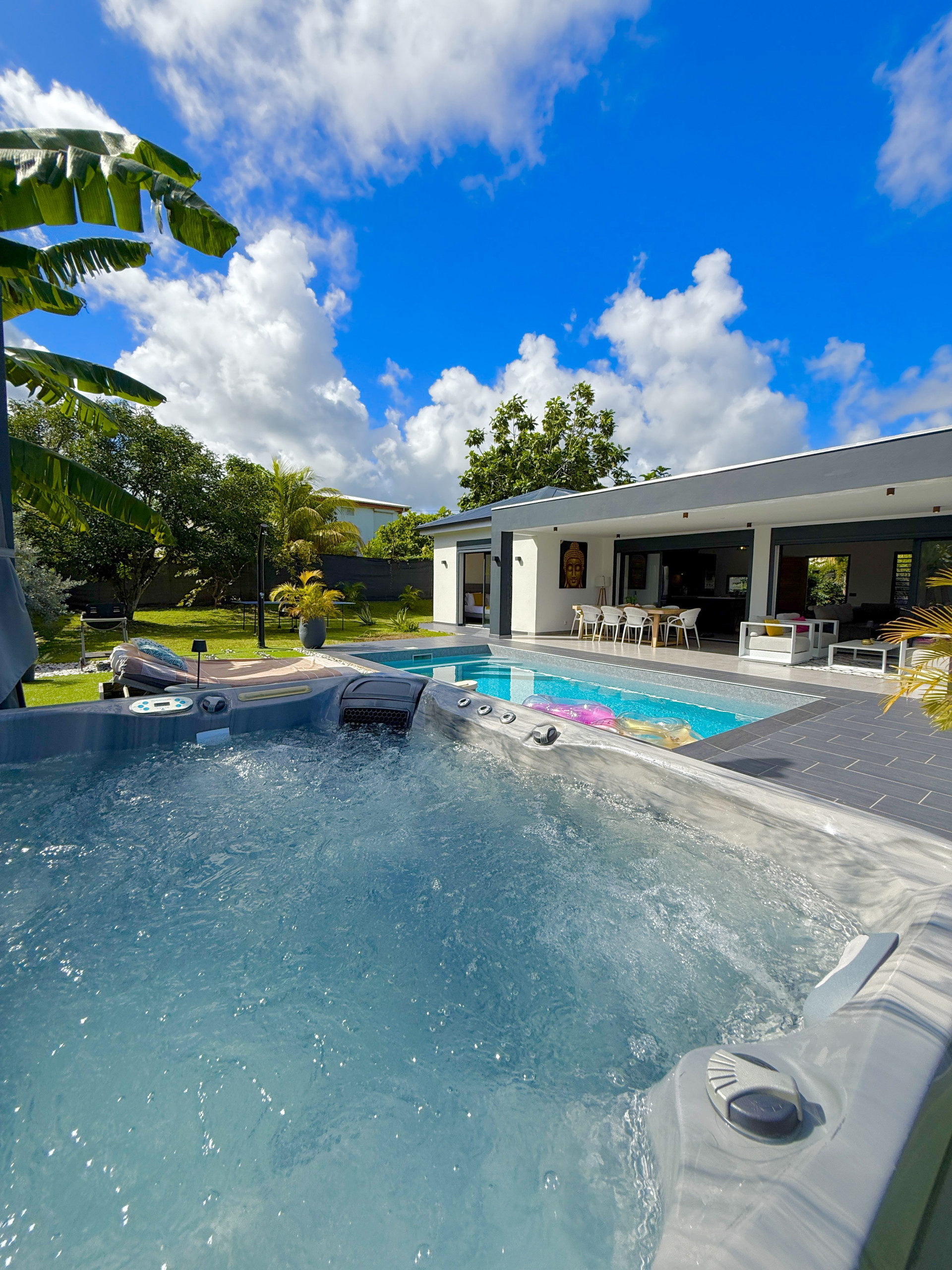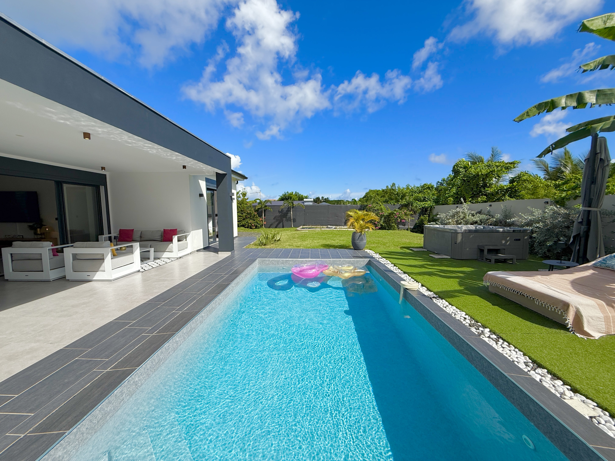 Villa à Le Moule qui possède 3 chambre(s) et Capacité pour 6 personnes. Logement de 140 m². Elle dispose de jardin, mobilier de jardin, clôture, lave-linge, sèche-linge, barbecue, fer à repasser, accès internet (wifi), sèche-cheveux, spa, climatisation, piscine privée, parking extérieur même bâtiment, TV.La cuisine américaine, Électrique, est équipée avec réfrigérateur, micro-ondes, four, lave-vaisselle, vaisselle/couverts, ustensiles/cuisine, cafetière, grille pain, bouilloire et presse-agrumes.